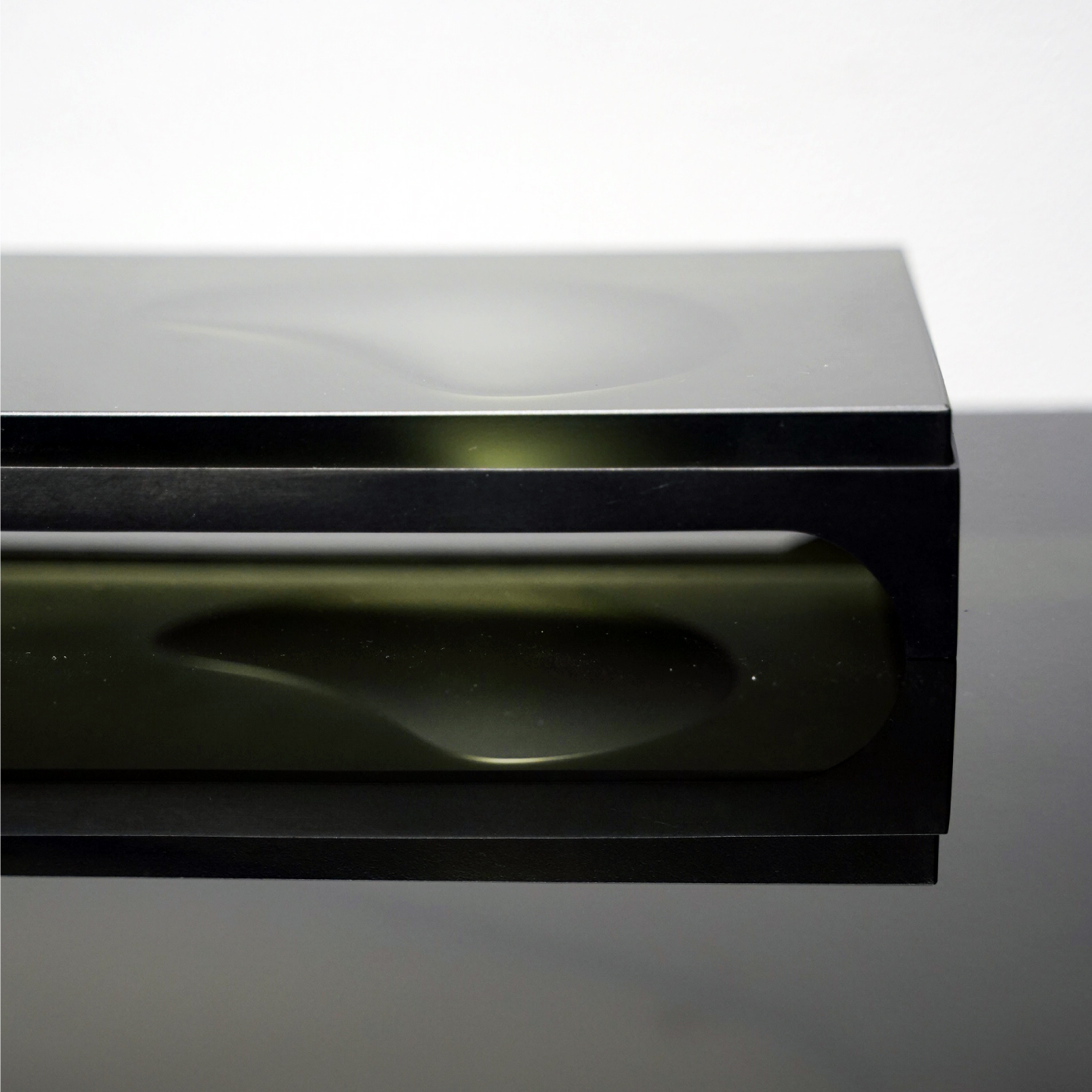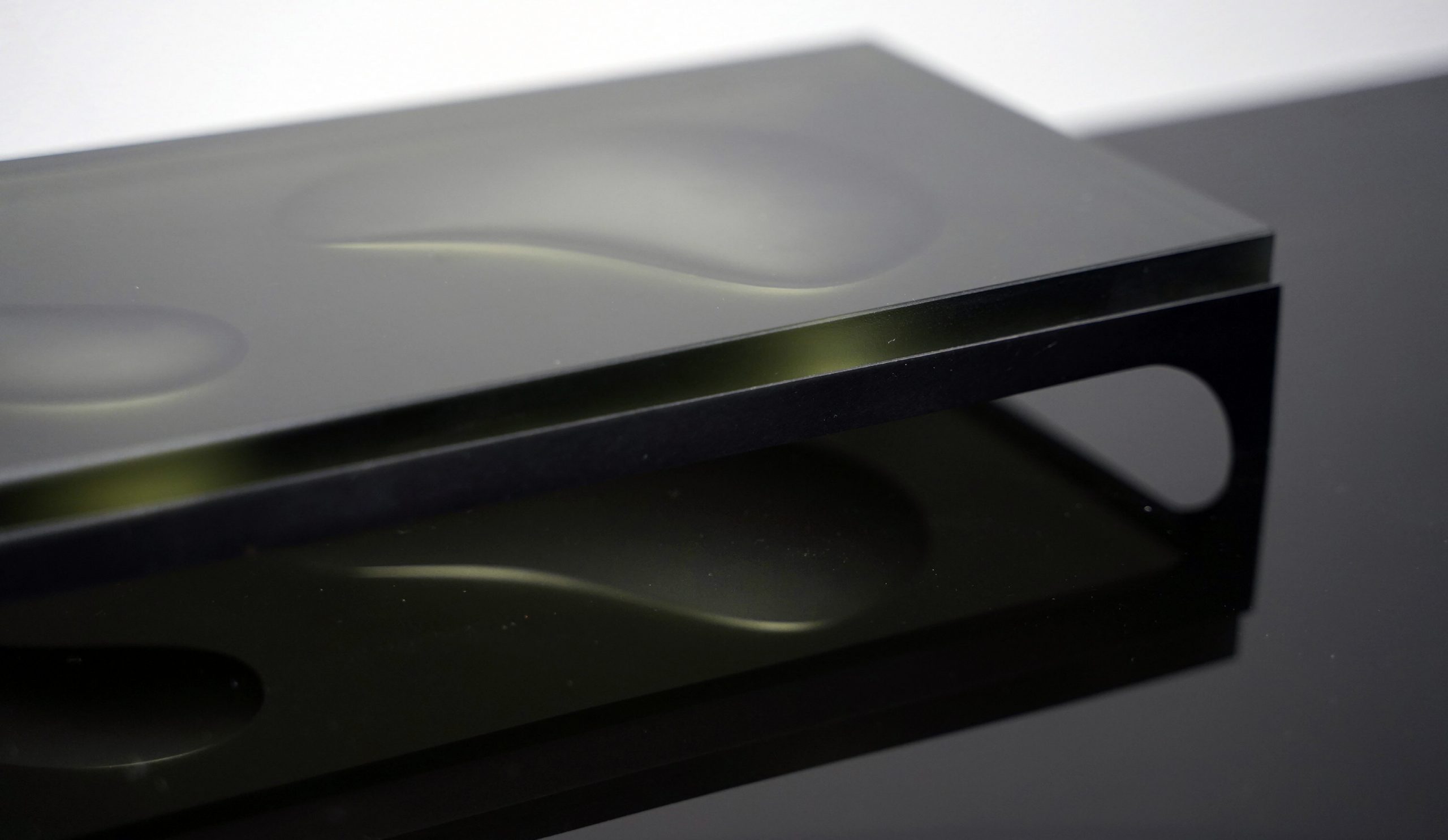 设计者取自然之沉积,用烟灰色的玻璃铸造家居,